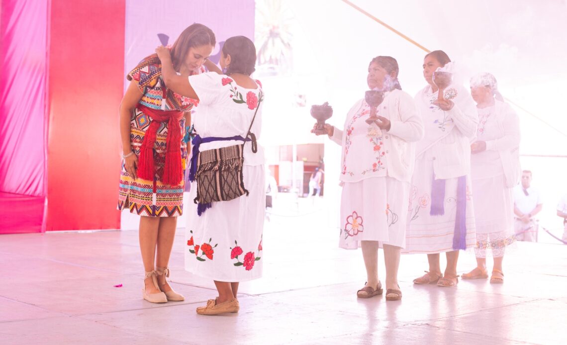 Al finalizar la ceremonia, la Mandataria Estatal degustó la gastronomía tradicional de la región y recorrió la exposición de artesanías y productos elaborados por los pueblos originarios. Además, en el escenario se celebró el Encuentro Estatal de Danzas,