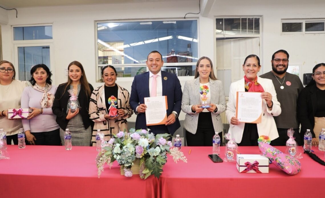 Cortazar, Gto.— El Municipio de Cortazar, encabezado por el presidente municipal Mauricio Estefanía, firmó un convenio de colaboración con la presidenta del DIF Municipal, Lizbeth Lepe Patiño, y la asociación Chispitas de Felicidad, con el propósito de impulsar la recolección de tapitas de plástico que serán intercambiadas por pelucas oncológicas y prótesis mamarias en beneficio de mujeres y niñas que enfrentan tratamientos contra el cáncer.