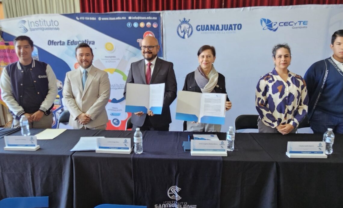 León, Gto.- El Colegio de Estudios Científicos y Tecnológicos del Estado de Guanajuato (CECyTEG) San Miguel de Allende I, firmó un acuerdo de colaboración con el Instituto Tecnológico Sanmiguelense de Estudios Superiores A.C., en el que se impulsará la formación profesional de las y los futuros egresados.