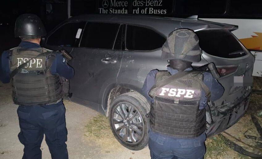 En el lugar, se aseguró un vehículo marca Toyota, ocho cartuchos útiles calibre 9 mm, 20 cartuchos útiles calibre 7.62 x 39 mm, tres cargadores metálicos calibre 7.62 x 39 mm, una funda para arma corta, un par de rodilleras tácticas y diez objetos metálicos conocidos como ponchallantas.