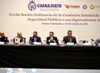 Celaya, Gto., a 01 de noviembre de 2025.- El Secretario de Seguridad y Paz, Juan Mauro González Martínez, encabezó la Sexta Sesión de la Comisión Estatal de Secretarios de Seguridad Pública o sus equivalentes, en la que anunció la capacitación para las corporaciones municipales en la lucha antiextorsión.