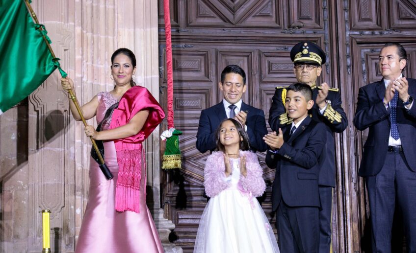 Luego del Grito, la Mandataria Estatal ondeó la Bandera y repicó la campana. Acto seguido se entonó el Himno Nacional; y la Gobernadora entregó la Bandera a la Escolta Militar para su resguardo.