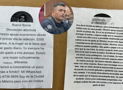 Lo anterior al ser cuestionado sobre la entrega de volantes que se realizan en algunas zonas de Celaya, en el que se puede leer que un hombre “busca novia” y ofrece apoyo económico a la mujer que acepte.